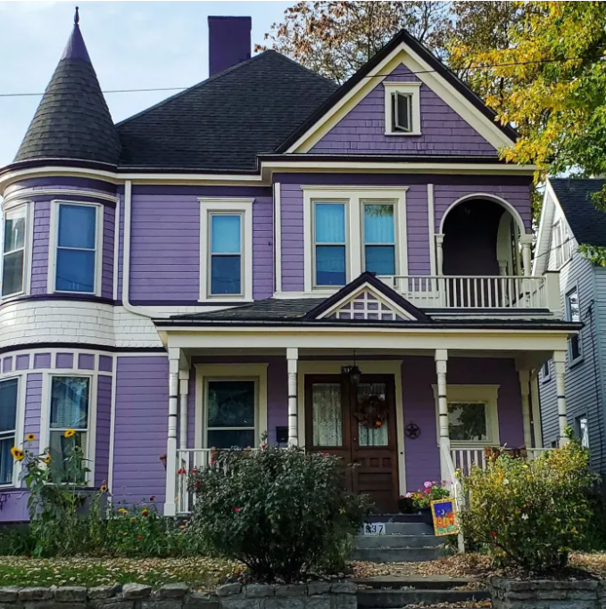 The ‘Barbie House’ is a unique purple Queen Anne built in 1894. The 3300 sq foot home boasts 12 rooms, 2 ½ baths, 4 original fireplaces, original pocket doors, & woodwork. It is now a renovated AirBnB property.