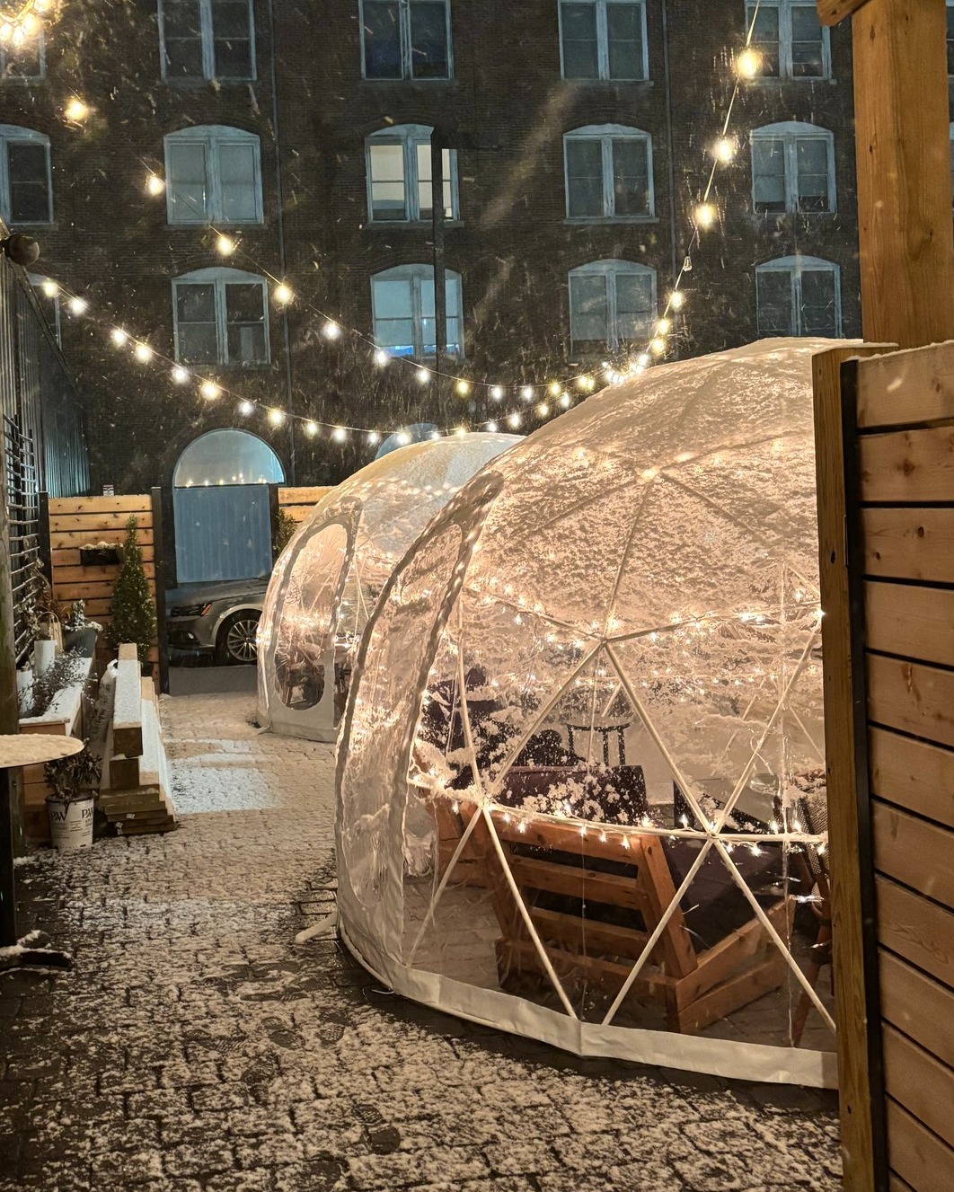 Austeria Wine Boutique is one of two establishments on the Riverway where you can enjoy drinks and small bites in a heated igloo. Cozy up with friends or that special someone for a unique dining experience.