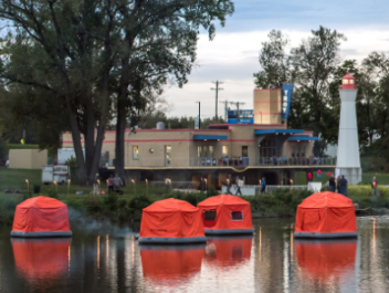 The only public floating-tent experience in Ohio — or anywhere else! Our tents are Shoal floating tents. A first of its kind, the Shoal tent is an inflatable, floating raft with a tent topper that allows you to sleep out on the water. Your tent comes inflated, anchored, and ready to use.