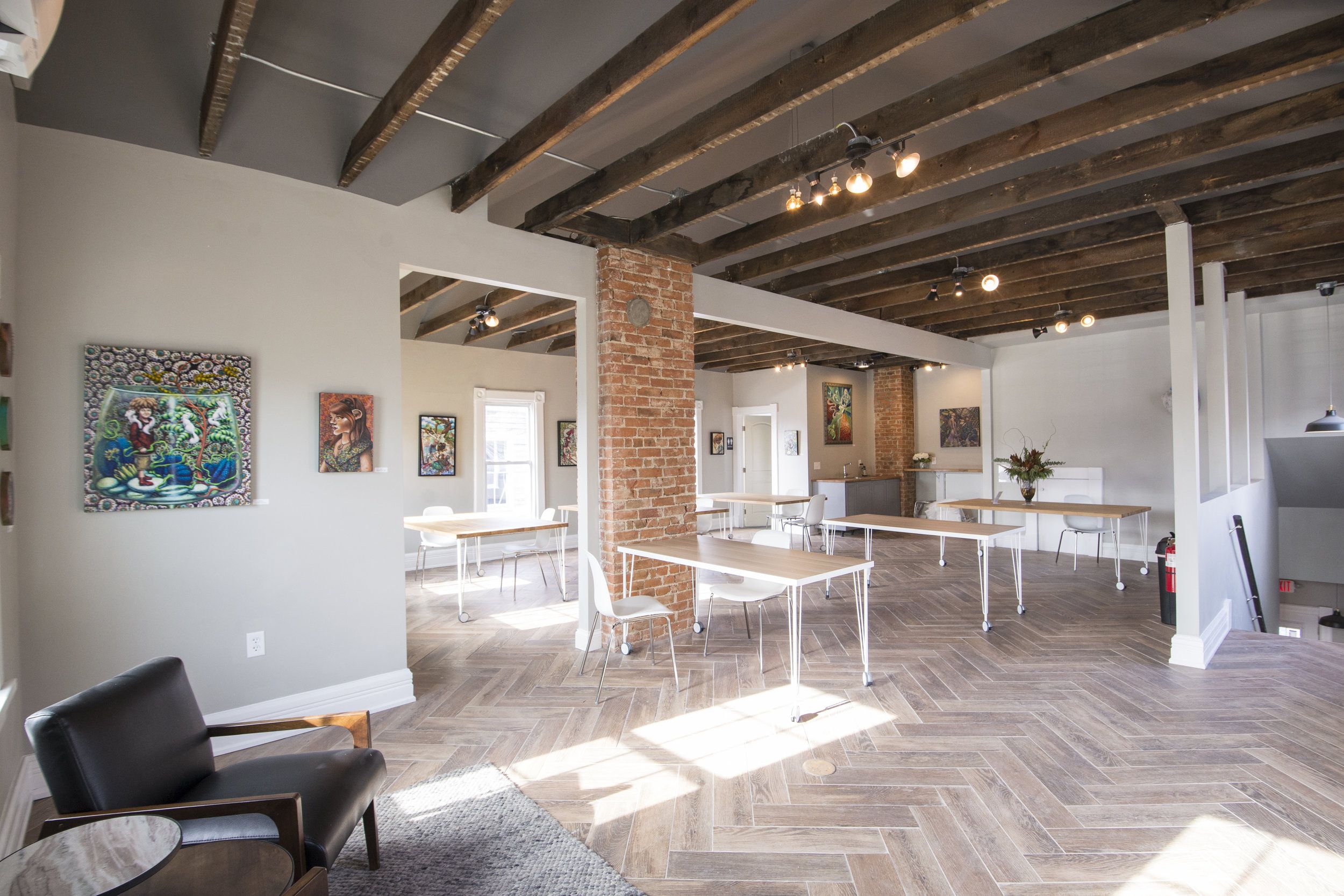 Our cat lounge is home to 18 adoptable, feline friends from our 501(c)(3) non-profit rescue partner, Gem City Kitties. A full-service espresso bar which serves fair trade coffee, tea, bakery items as well as wine and cocktails. We also have a separate art gallery with additional seating upstairs with plenty of large tables to spread out and for activities like coffee brewing courses, TNR Certification workshops, and available for private rentals.
